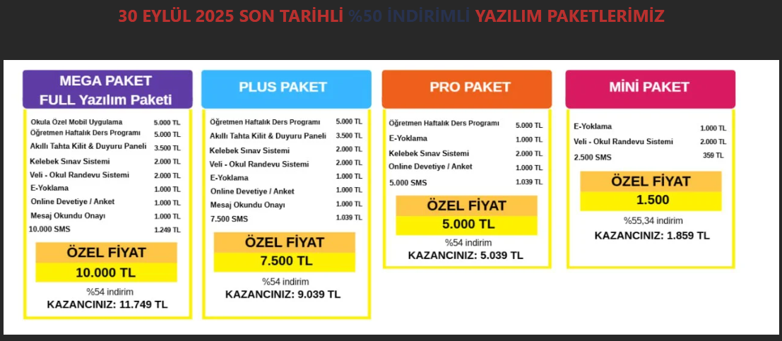 30 EYLÜL 2025 SON TARİHLİ %50 İNDİRİMLİ YAZILIM PAKETLERİ